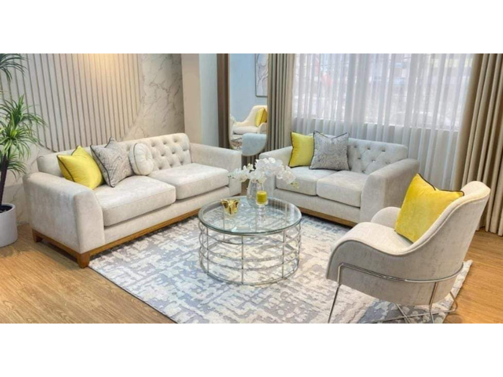 Tapizado en tela chenille color plomo. Incluye: